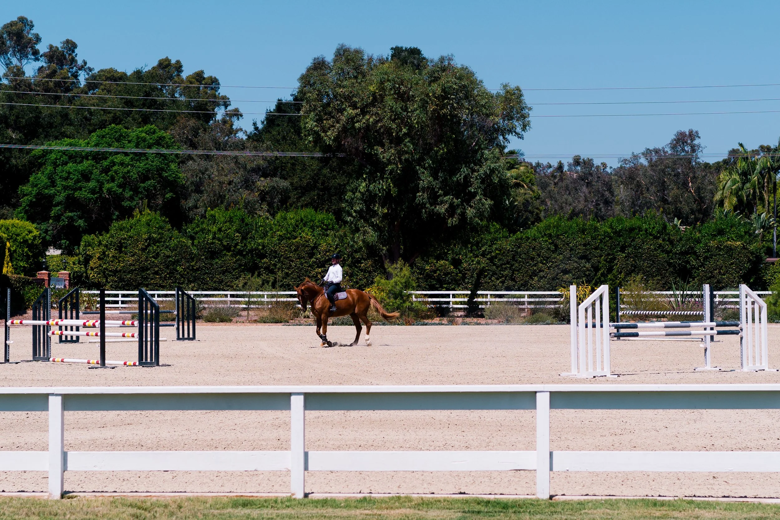 - **160 × 290 all-weather jumping arena** (GEOTEXTILE base, silica sand footing)